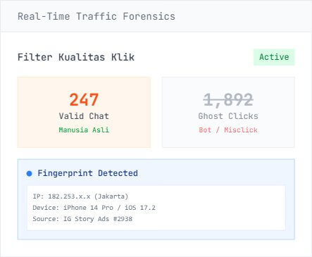 Paket LengkapTeknologi Pelacak Iklan WhatsApp™ + 3 Bonus Eksklusif. Lacak siapa yang benar-benar chat & beli, kirim data akurat ke Facebook & Google.